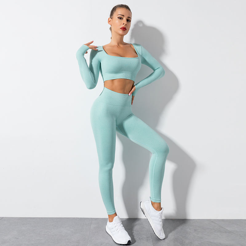 Product Name:Women Sexy Square Collar Long Sleeve Seamless Yoga Gym Fitness Sets