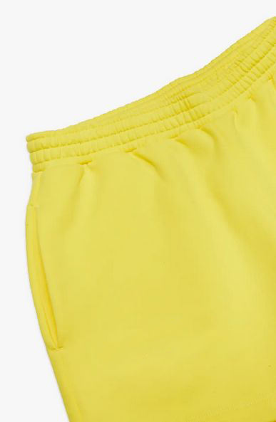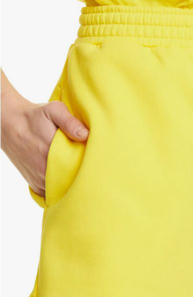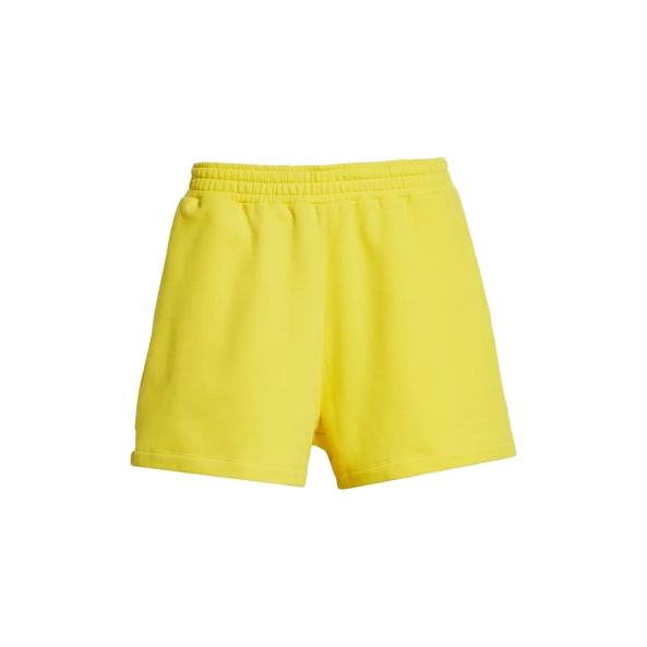 กางเกงขาสั้นผ้าเทอร์รี่ระบายอากาศสำหรับผู้หญิง สีเหลือง พิมพ์โลโก้ตามสั่ง เอวยางยืด แห้งเร็ว มีกระเป๋า สไตล์ลำลองแบบคาร์โก้