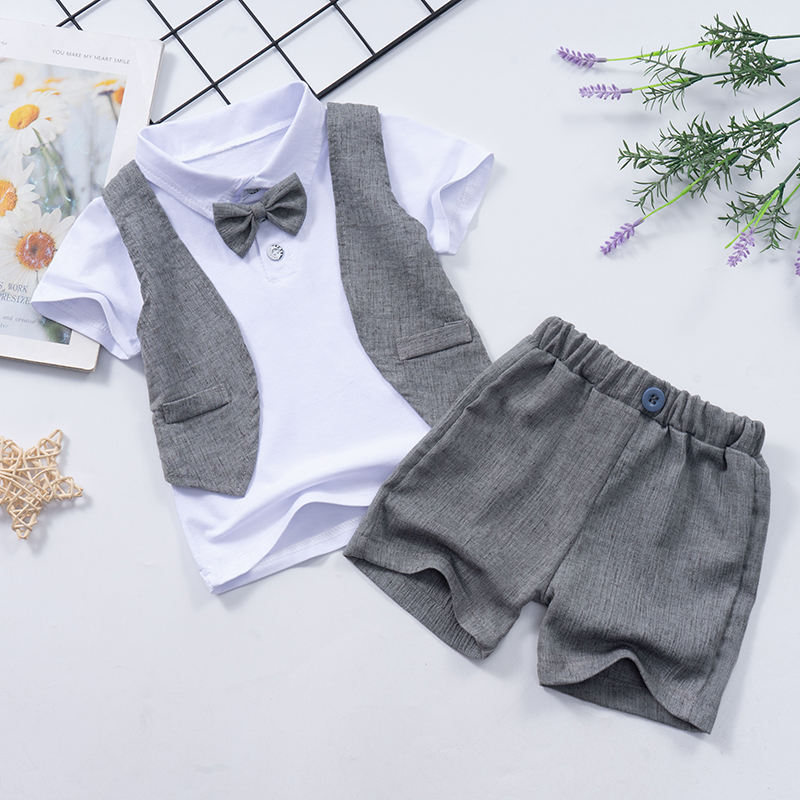 ชุดเสื้อยืดและกางเกงขาสั้นเด็กผู้ชายลายตารางแบบใหม่ ปี 2022 สำหรับเด็กอายุ 1-5 ปี ราคาประหยัด