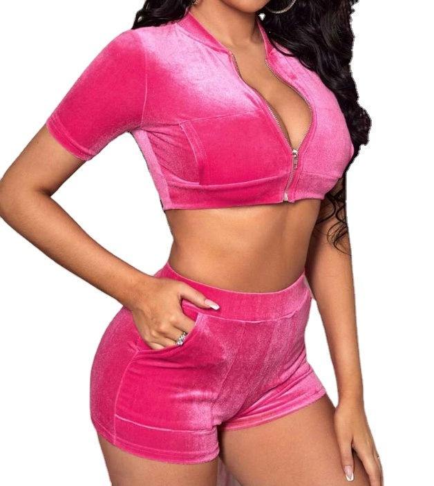 2023 2 ชิ้นชุดผู้หญิงฤดูร้อนกํามะหยี่ชุดเสื้อแขนสั้น 100% Cottonสวมใส่ผู้หญิงVelourกางเกงขาสั้นชุด