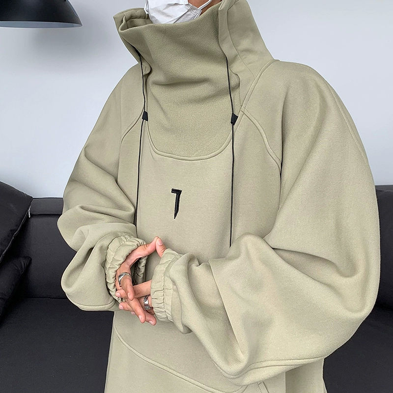 เสื้อนินจาคอเต่ามีฮู้ดสำหรับผู้ชายสำหรับฤดูใบไม้ร่วงและฤดูหนาว2023สเวตเชิ้ตฮิปฮอปโอเวอร์ไซส์สีดำไซส์ L