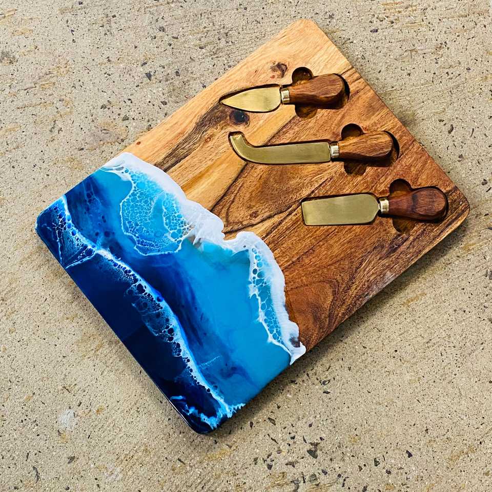 เขียงไม้ชีสสวยงาม2023มีแถบงานทำจากเรซิ่นไม้ไผ่สำหรับตัดผักและตัดชีสสำหรับห้องครัว