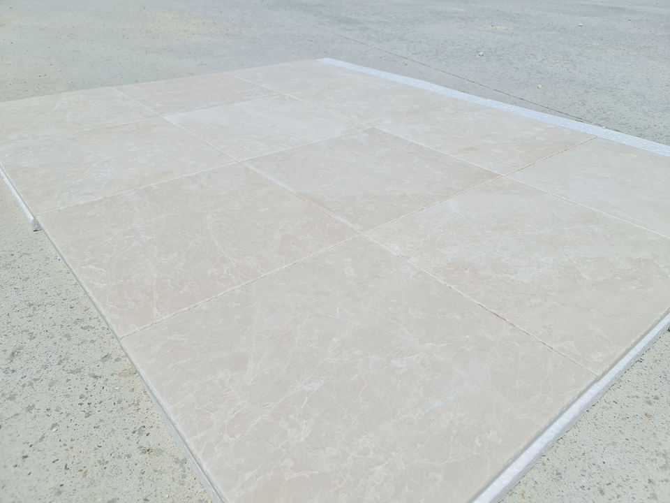 หินอ่อนสีเบจแบบขัดเงา ปี 2023 ขนาด 10x305x305 มม. ปรับแต่งได้ สำหรับปูพื้นภายนอก หินธรรมชาติ ผิวเรียบ ทันสมัย หินอ่อน Cem หนา 30 มม.