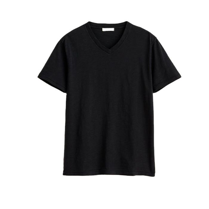 เสื้อยืดคอวีสำหรับผู้ชายและผู้หญิงเสื้อยืดสีดำมีโลโก้ออกแบบได้ตาม2023