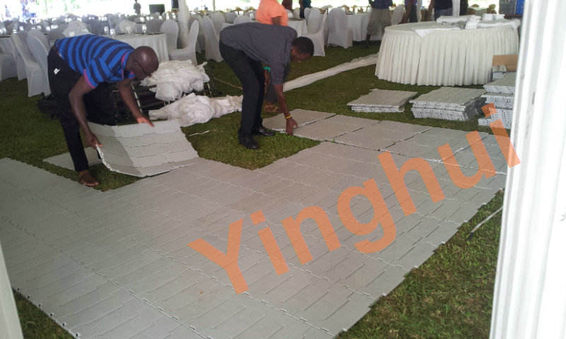 พื้นพลาสติก PP คุณภาพดีที่สุดปี 2023 สำหรับงานกีฬากลางแจ้ง โรงงานเต็นท์ Lokang Sports Manufacturing ในมาเลเซีย รับประกัน 5 ปี