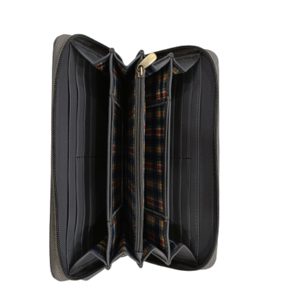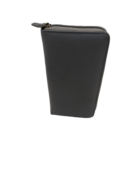 2023โบฮีเมียนปักแบบโบฮีเมียน RFID การปิดกั้นบางหนังแท้ยาวผู้ถือบัตรกระเป๋ากระดุมใหม่ผ้าโพลีเอสเตอร์สีเทา