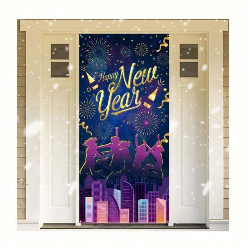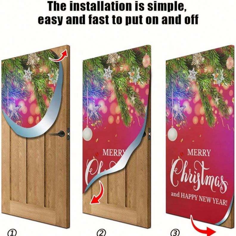 ผ้าคลุมมือจับประตูแบบสแปนเด็กซ์ลายธงประดับตกแต่งเทศกาลคริสต์มาส/ปีใหม่ปี 2023 พร้อมโลโก้สั่งทำพิเศษสำหรับแขวนภายนอก