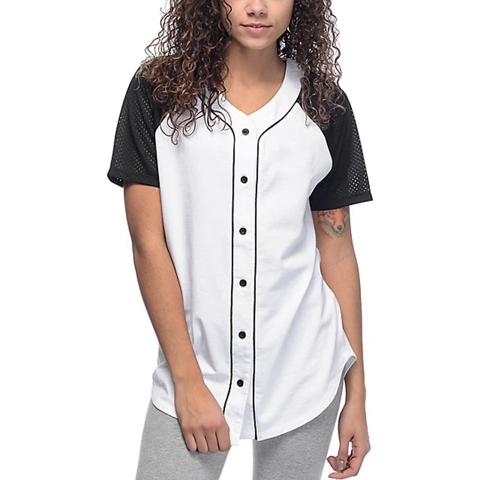 เสื้อเบสบอลของผู้หญิงเสื้อกีฬาแขนตาข่ายระบายอากาศได้ดีผ้าโพลีเอสเตอร์พิมพ์ซับลิเมตไซส์พิเศษออกแบบได้ตามต้องการ2023