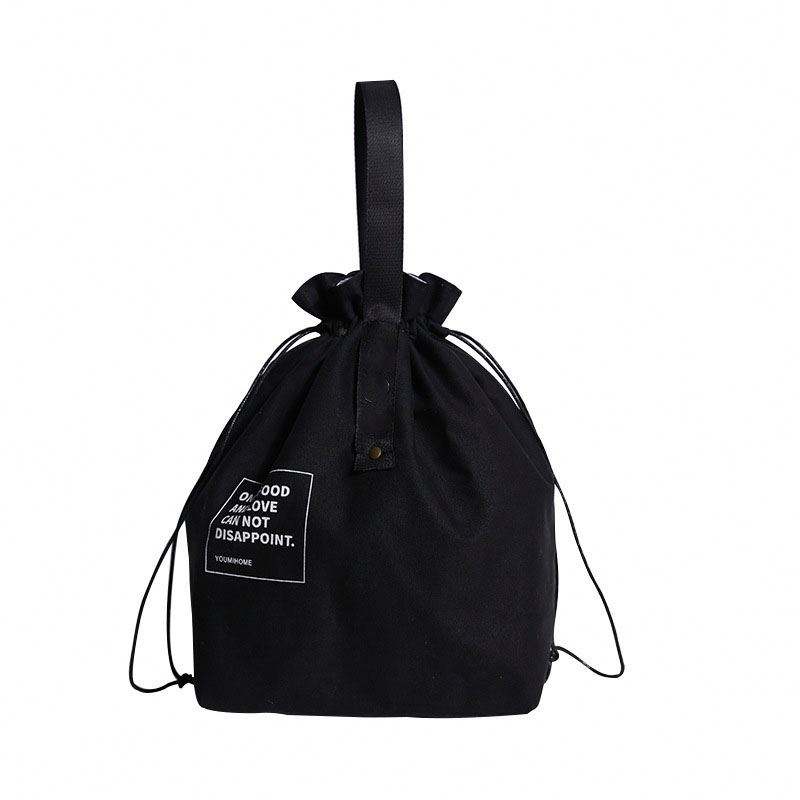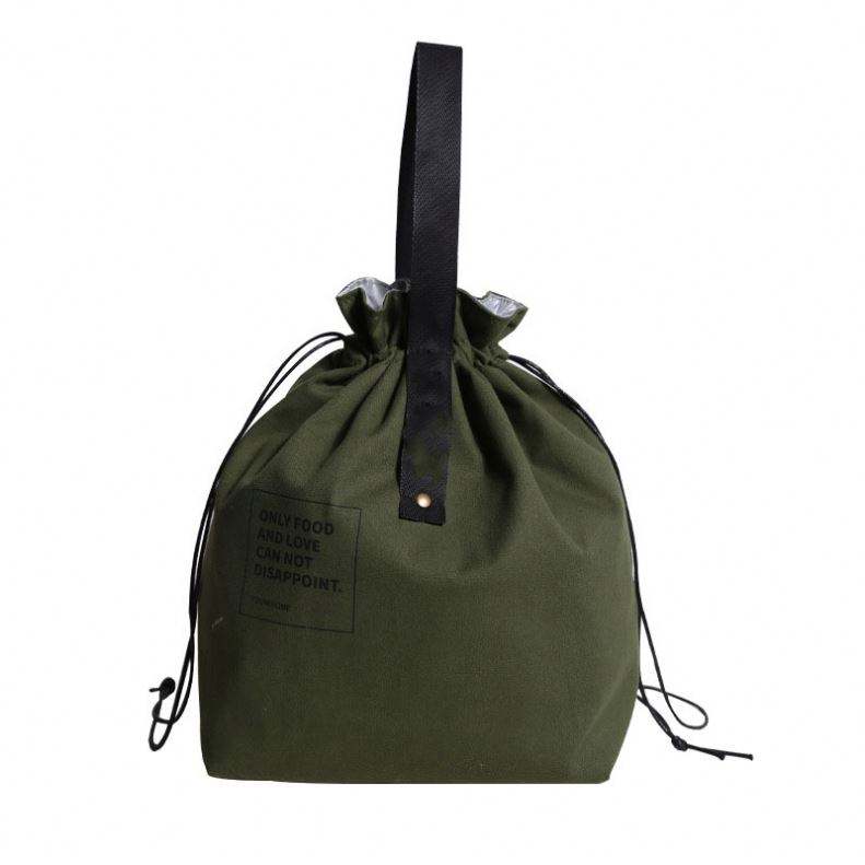 กระเป๋าใส่อาหารกลางวันแบบมีเชือกผูก รุ่นใหม่ ปี 2023 กระเป๋าผ้าแคนวาสเนื้อนุ่มแบบนำกลับมาใช้ใหม่ กระเป๋าเก็บอุณหภูมิสำหรับผู้หญิงและผู้ชาย