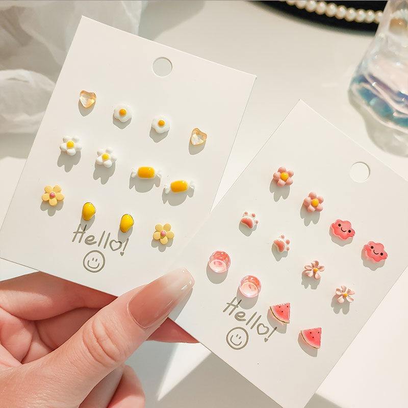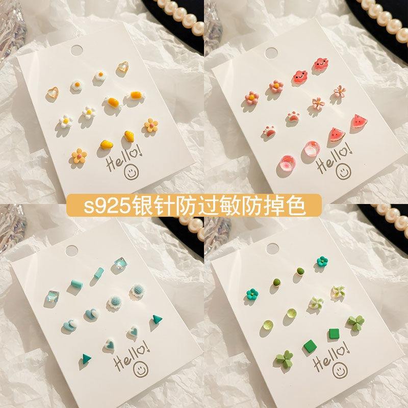ต่างหูเงินแฟชั่นปี 2023 ดีไซน์สวยน่ารัก สไตล์ INS สีลูกกวาด ชุดต่างหูเซรามิกสำหรับผู้หญิง
