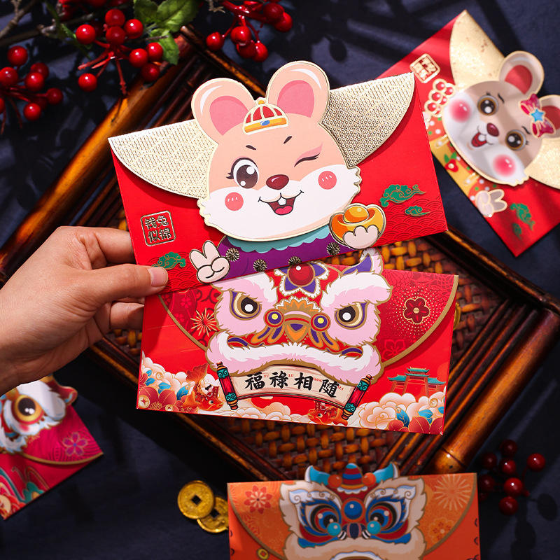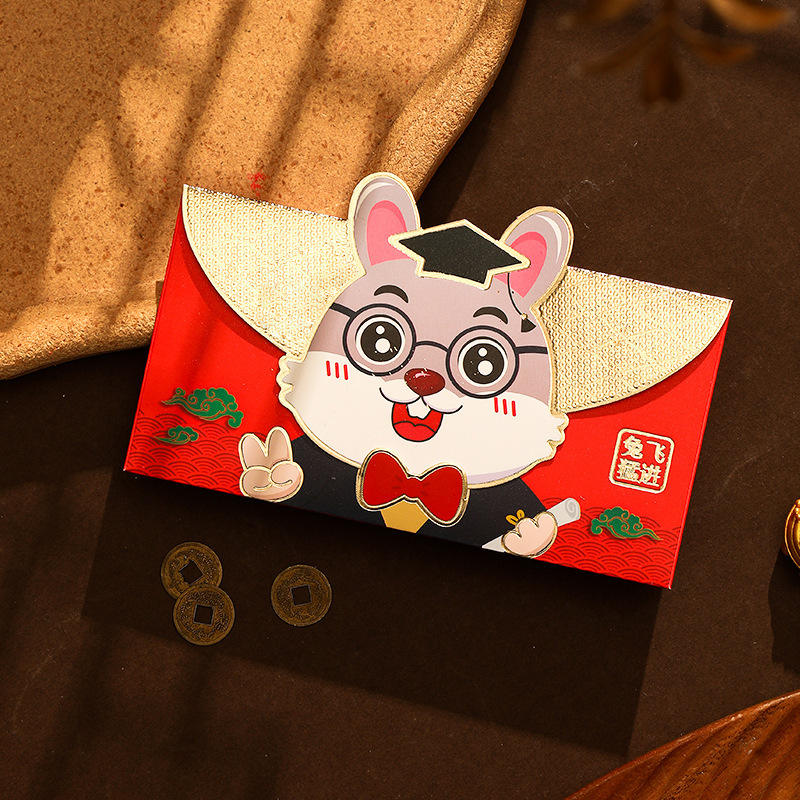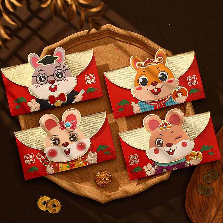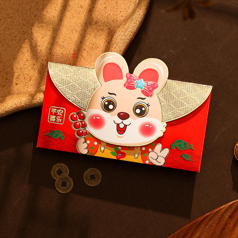 ปั๊มสีทอง2023ปีที่มีคุณภาพสูงกระต่ายนำโชคซองจดหมายสีแดงดีไซน์โรงงานกระเป๋าสตางค์แพ็คเก็ตสีแดงร้อน