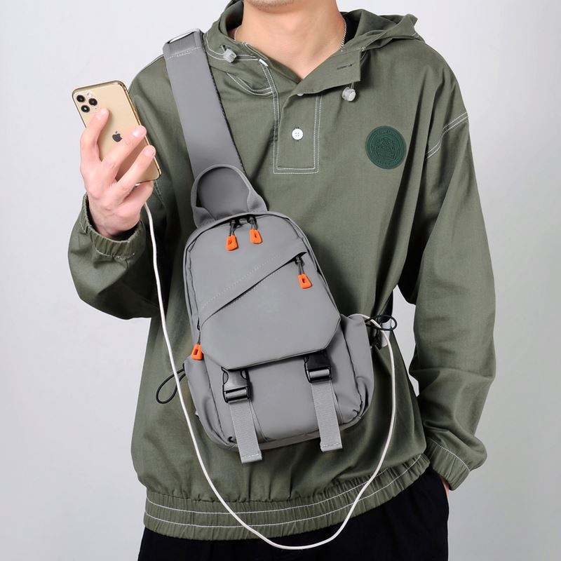 2023กระเป๋าสะพายพาดลำตัวแบบ USB กันน้ำได้สำหรับผู้ชายกระเป๋าสะพายไหล่คาดอกกลางแจ้ง