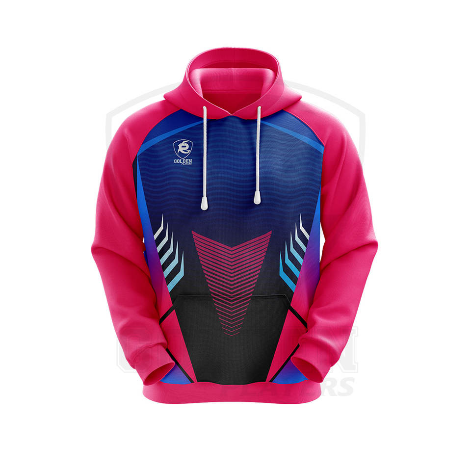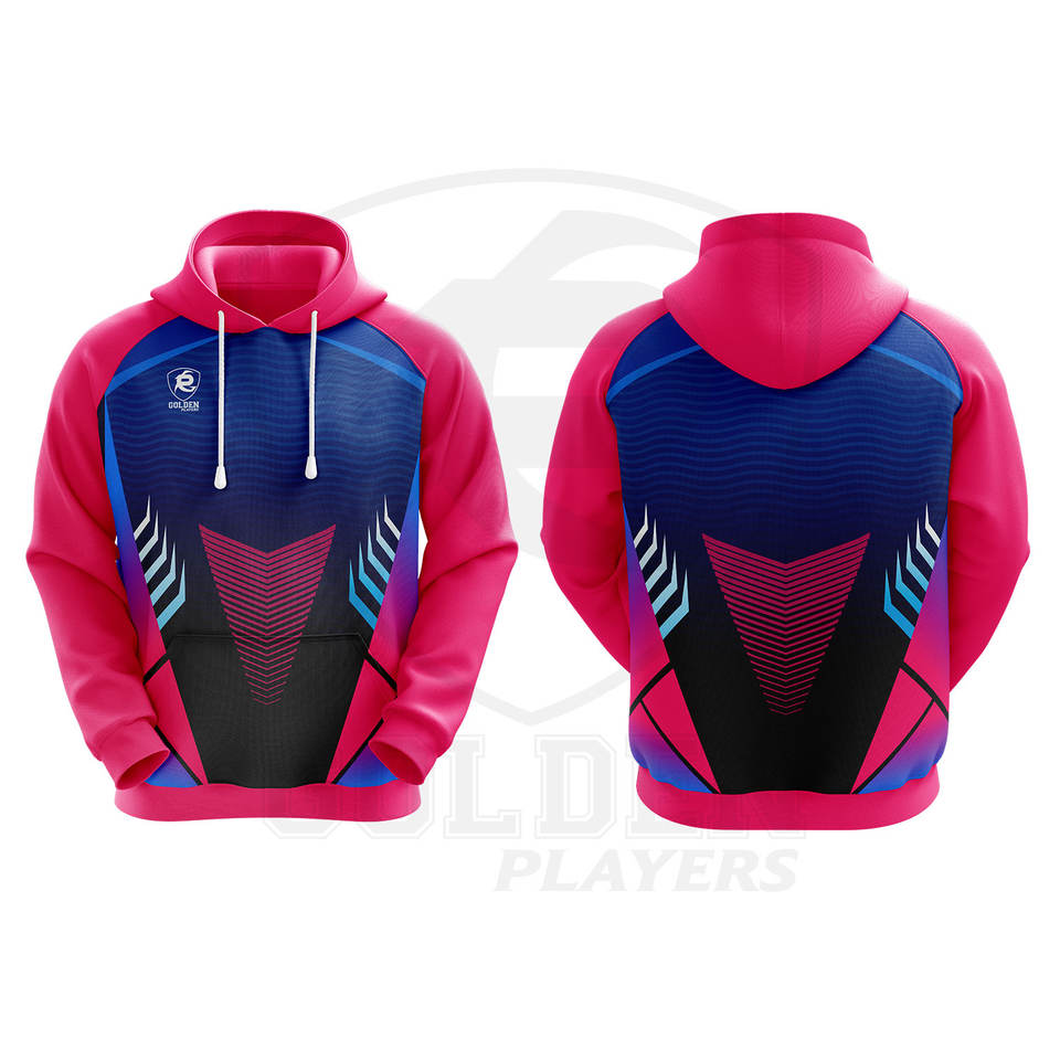 เสื้อฮู้ดแขนยาวของผู้ชายเสื้อสเวตเชิ้ตมีฮู้ดแบบซับลิเมชันเต็มสีชมพู