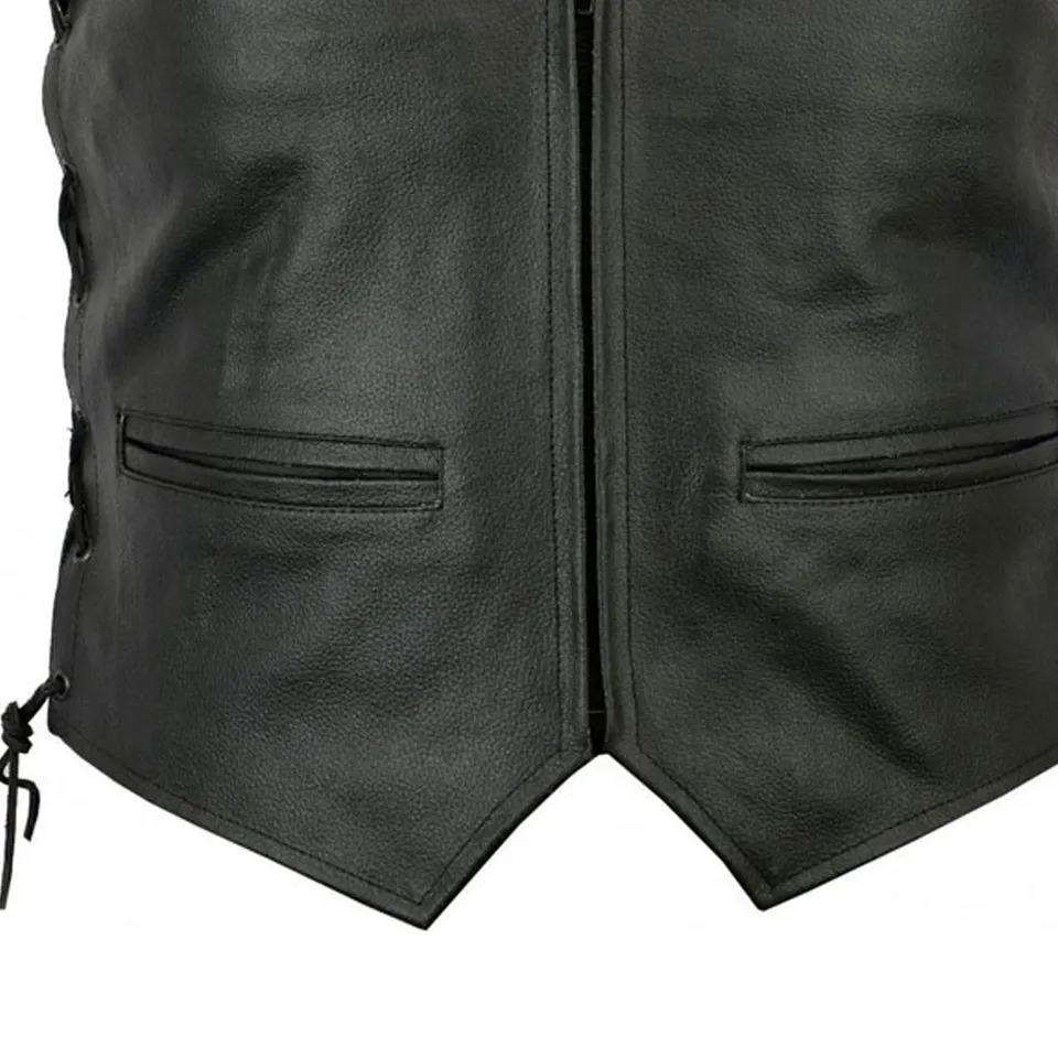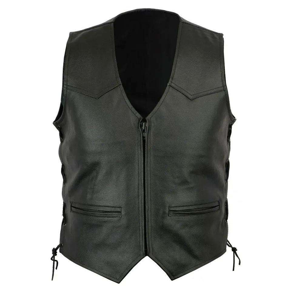 2023เสื้อกั๊กมอเตอร์ไซค์สำหรับผู้ชายเสื้อแจ็กเก็ตหนังน้ำหนักเบาดีไซน์ไม่มีปกสำหรับฤดูหนาว