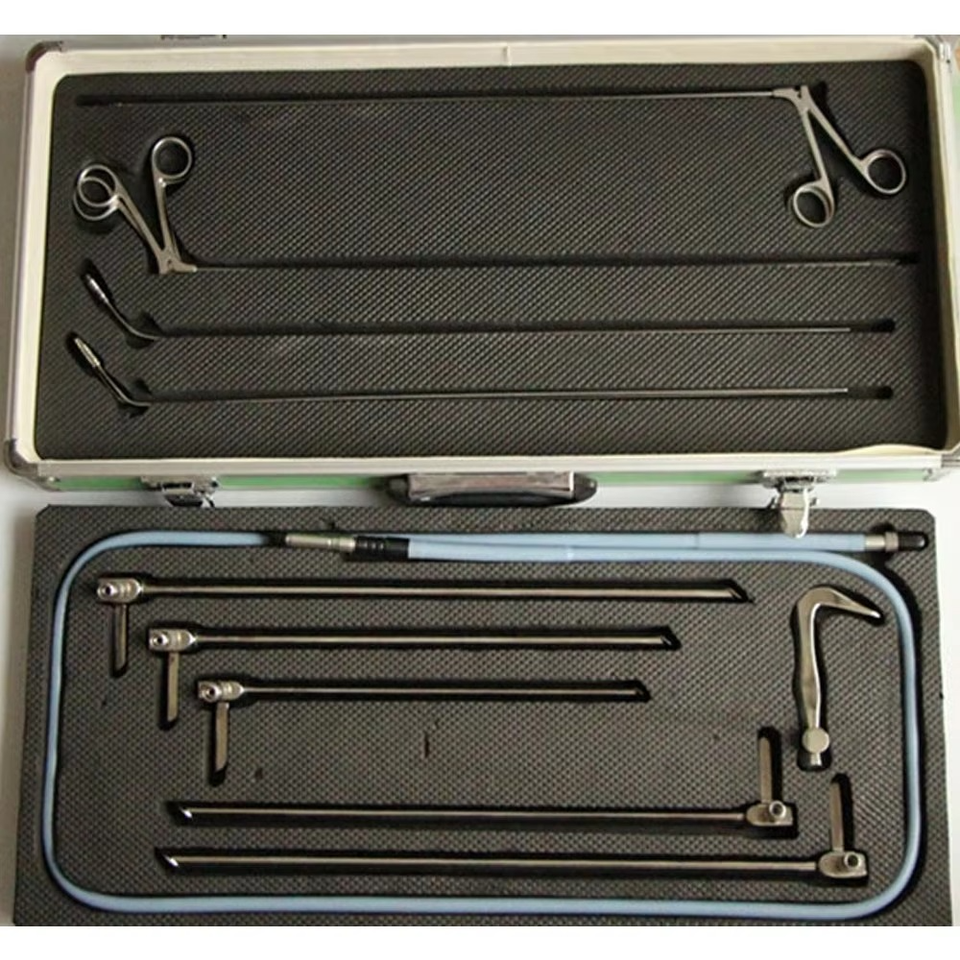 ชุดเครื่องมือส่องกล้องผ่าตัดแบบใช้มือทำจากสแตนเลสคุณภาพสูง ปี 2023 ใช้ซ้ำได้ แบบกำหนดเองได้ สำหรับตรวจหู คอ จมูก วัสดุพลาสติก