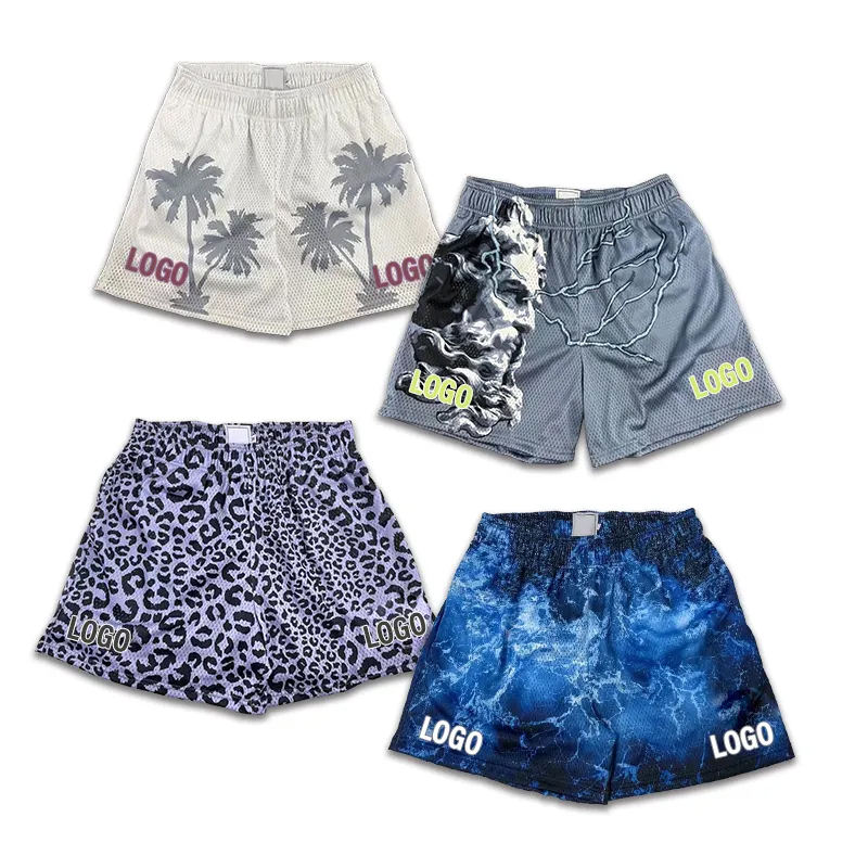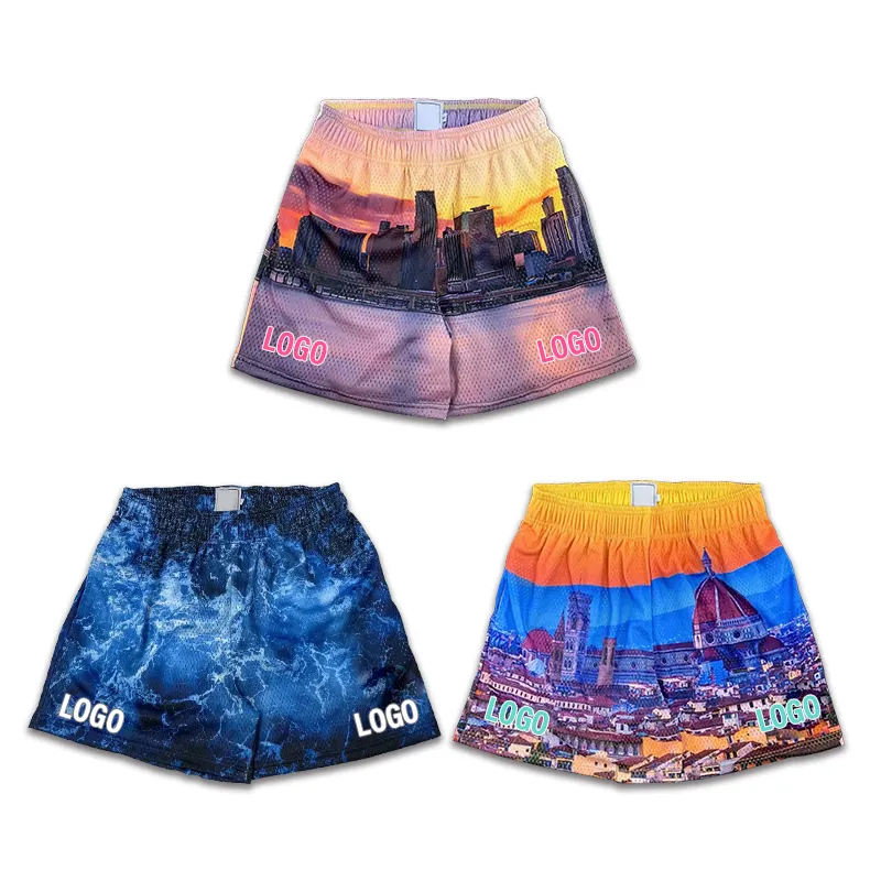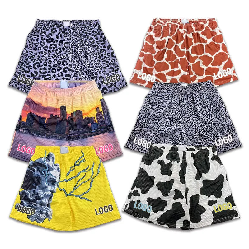 กางเกงขาสั้นบาสเก็ตบอลสำหรับผู้ชายผ้าแห้งเร็วระดับเข่าสำหรับเล่นยิมกางเกงบาสเก็ตบอลสำหรับฤดูร้อนโลโก้ตามสั่ง100% ลายกราฟิกผ้าโพลีเอสเตอร์