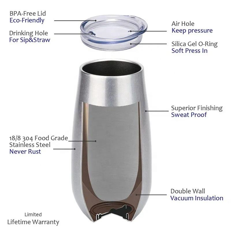 แก้วทรงฟลุตทันสมัยขนาด 6 ออนซ์ ปี 2023 ขายส่ง แก้วสแตนเลสสองชั้นเก็บความร้อน ความเย็น ได้ สกรีนโลโก้ได้ ใช้สำหรับงานปาร์ตี้ ใส่ไวน์