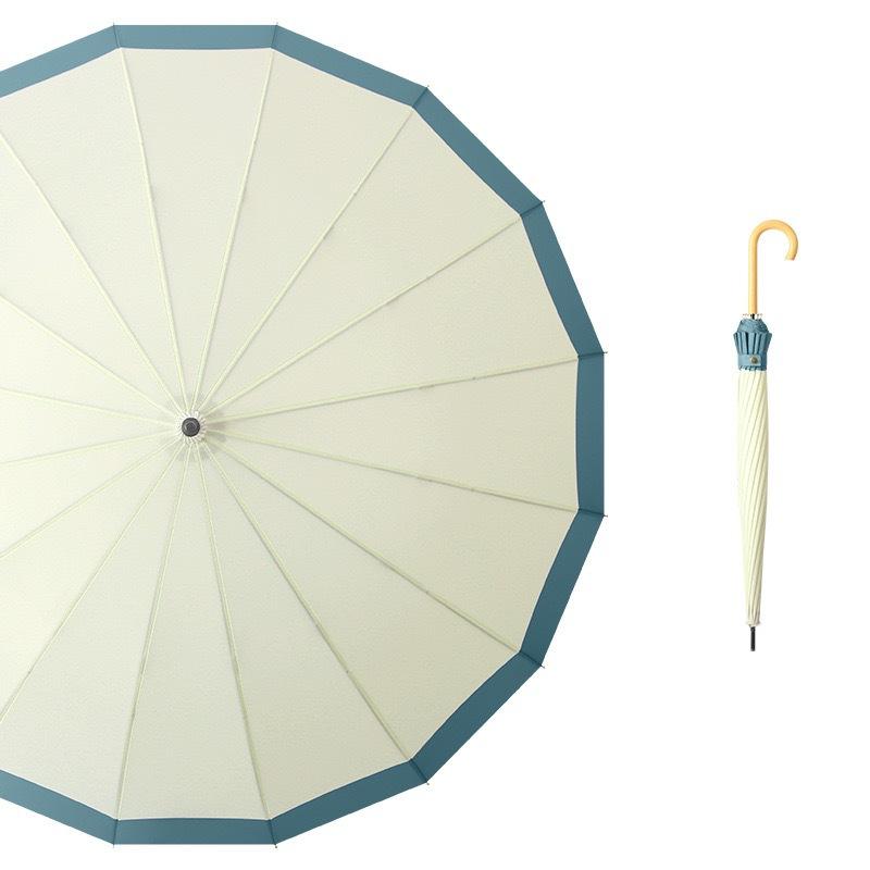 2023 Hot Sale High Quality Dark Green 16 Ribs Golf Straight Umbrella with Wood Curved Handle