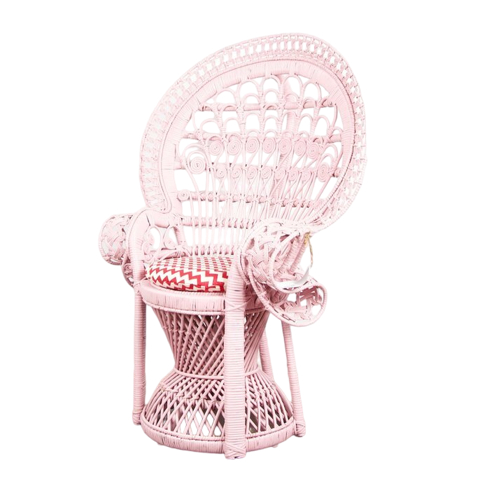 เก้าอี้สูงพับได้สำหรับเด็กเก้าอี้นกยูงหวายสีพาสเทลสีชมพูพรีเมียม2023สำหรับรับประทานอาหาร/ห้องครัว