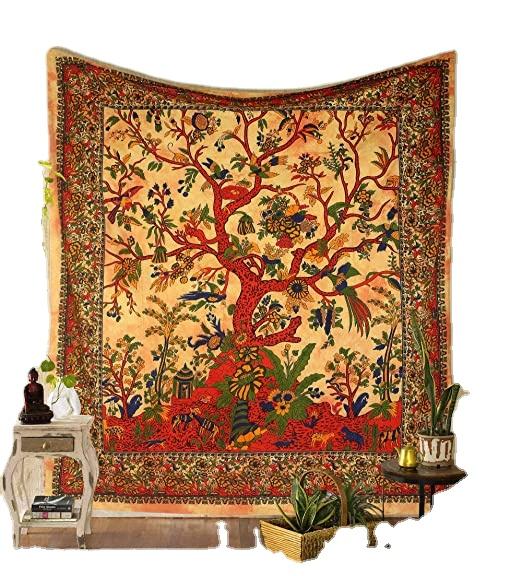 2023ร้อนขายต้นไม้ของชีวิตผูกและย้อมแขวนผนังผ้าฝ้ายพรมตกแต่ง84X90นิ้วพรมราคาผู้ผลิต