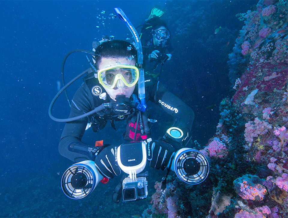 สกู๊ตเตอร์ใต้น้ำไฟฟ้าอัจฉริยะ Sublue รุ่นขายดีปี 2023 ความเร็ว 1.5 เมตร/วินาที ความลึก 40 เมตร แบตเตอรี่ 11000mAh มอเตอร์ 520 วัตต์ สำหรับกีฬาทางน้ำ