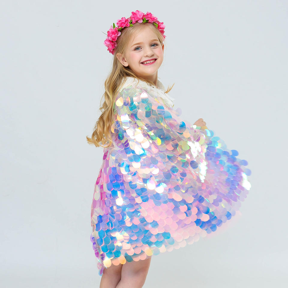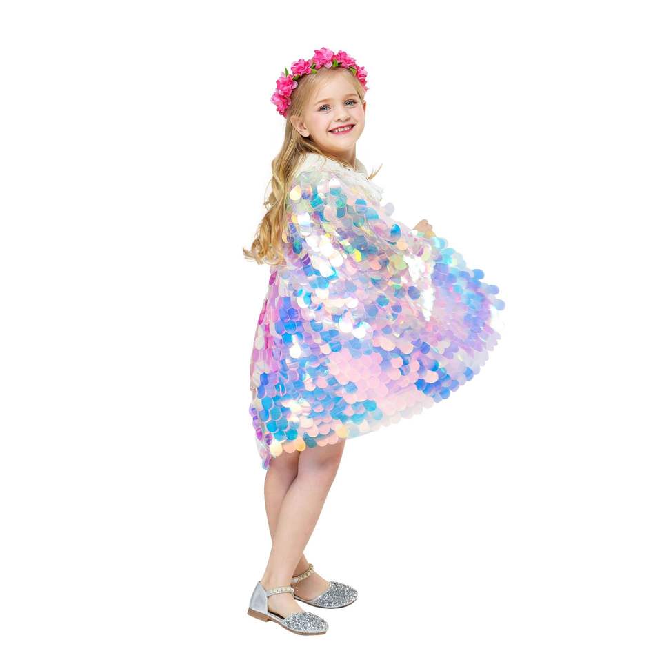 2023 เด็กสาวSequined Mermaid Capesเด็กสําหรับฮาโลวีนคริสต์มาสRockแฟนซีชุดเครื่องแต่งกาย