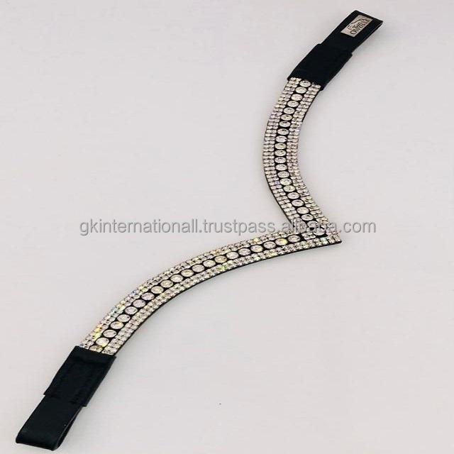 2023ล่าสุดมาถึงสีดำหรือฮาวานาสีน้ำตาลพรีเมี่ยมหนังม้าคิ้ววงตกแต่งด้วย5แถวคริสตัลใสประกาย Bling