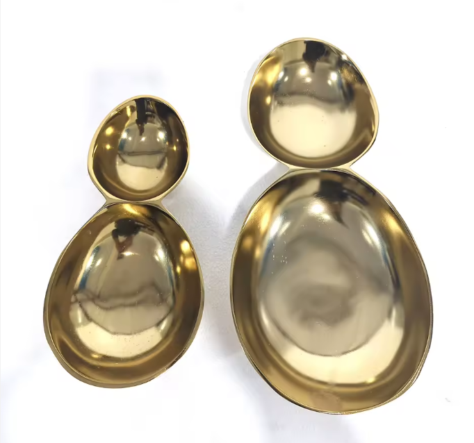 จานเสิร์ฟอะลูมิเนียมรูปไข่คู่ ดีไซน์ล่าสุดปี 2023 ภาชนะตกแต่งโต๊ะอาหารทันสมัยสำหรับงานแต่งงาน