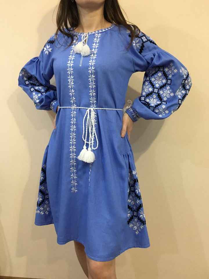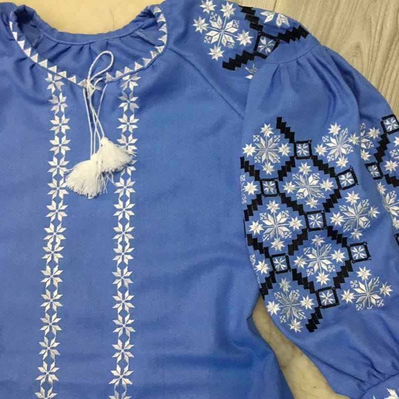 2023การออกแบบล่าสุดเย็บปักถักร้อยยาวสีฟ้าสำหรับผู้หญิงชุดมือทำสีขาวเย็บปักถักร้อยยูเครนชุดเข่า