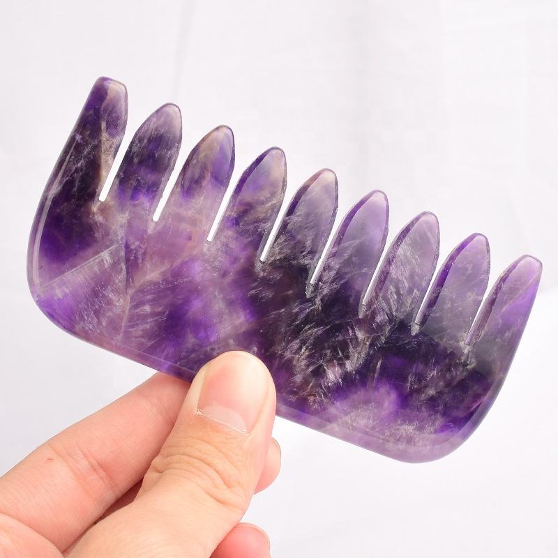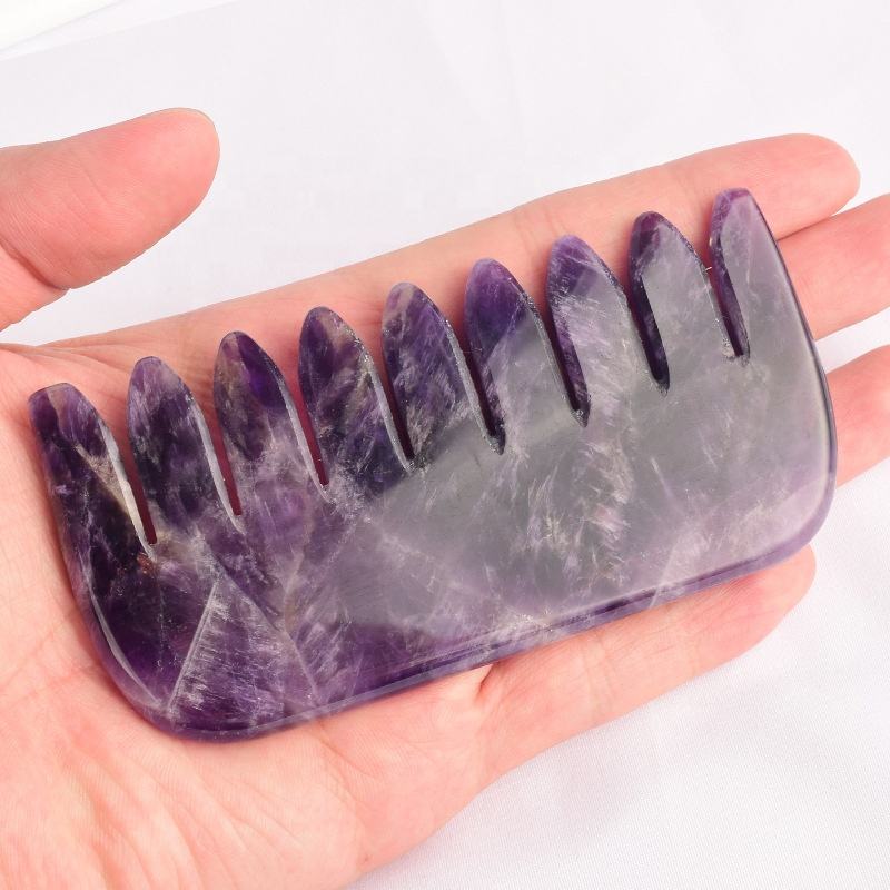 หวีอะเมทิสต์ Gua Sha สำหรับนวดหนังศีรษะ,หวีซี่สำหรับนวดหนังศีรษะของขวัญสุดหรูหวีแบบกำหนดเองได้หยกธรรมชาติซี่กว้างหวีซี่พร้อมโลโก้หวีผมคริสตัลบำบัดปี2023