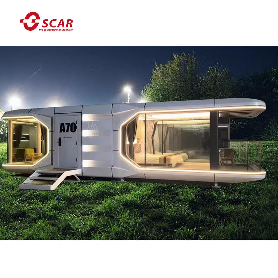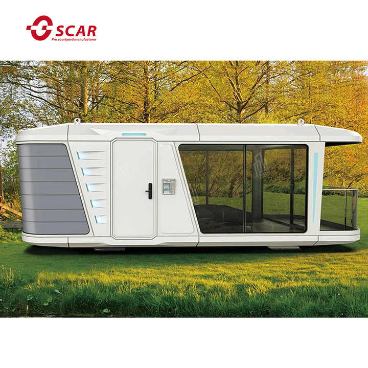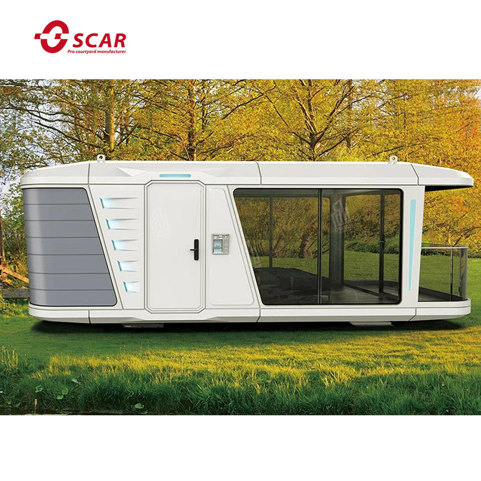บ้านแคปซูลเคลื่อนที่ขนาด 20 ฟุต ปี 2023 รุ่นหรูหรา พร้อมเฟอร์นิเจอร์ครบครัน ผลิตจากแผ่นแซนวิช สำหรับใช้เป็นสำนักงาน สไตล์จีน