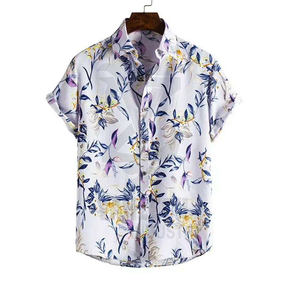 เสื้อผู้ชายแบบสั่งทำปี 2023 ดีไซน์ใหม่ ลายเรียบ ผ้าถักเนื้อฝ้าย/ใยไผ่ ระบายอากาศได้ดี เหมาะสำหรับใส่ไปชายหาด แขนสั้น