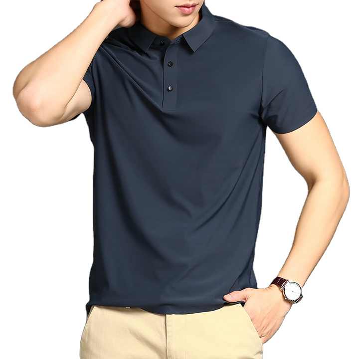 เสื้อยืดผู้ชายฤดูร้อนปี 2023 ผ้าฝ้าย 100% ไอซ์ซิลค์ กันยับ มีกระเป๋าเสื้อ ทรงหลวม แขนสั้น คอปก สีพื้น พิมพ์ลาย