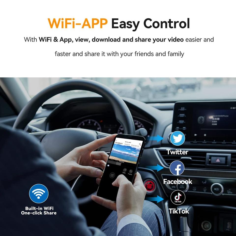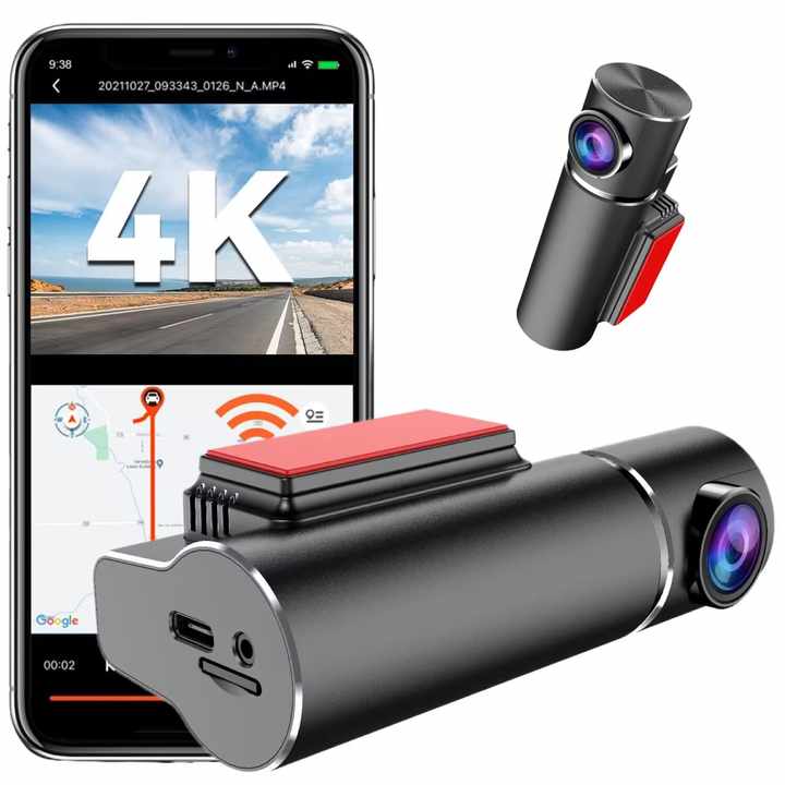 กล้องวิดีโอ Dvr ในรถยนต์ขนาดมินิ2023 P,กล้องติดรถยนต์ Dvr คู่ด้านหลัง2160P ควบคุมด้วย WiFi ในตัวกล้องติดรถยนต์ด้วย Blackbox 4K 1080