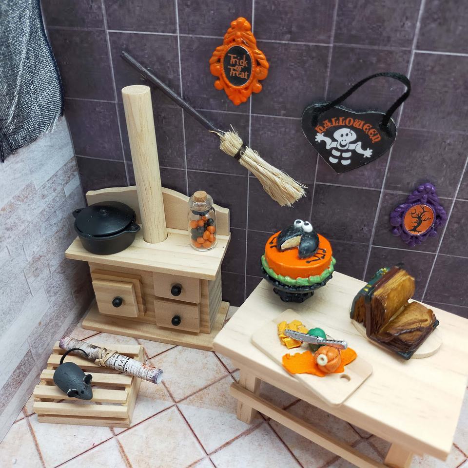 บ้านตุ๊กตาขนาดเล็ก1:12อุปกรณ์ตกแต่งฮาโลวีนตอนที่6จาก9