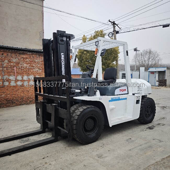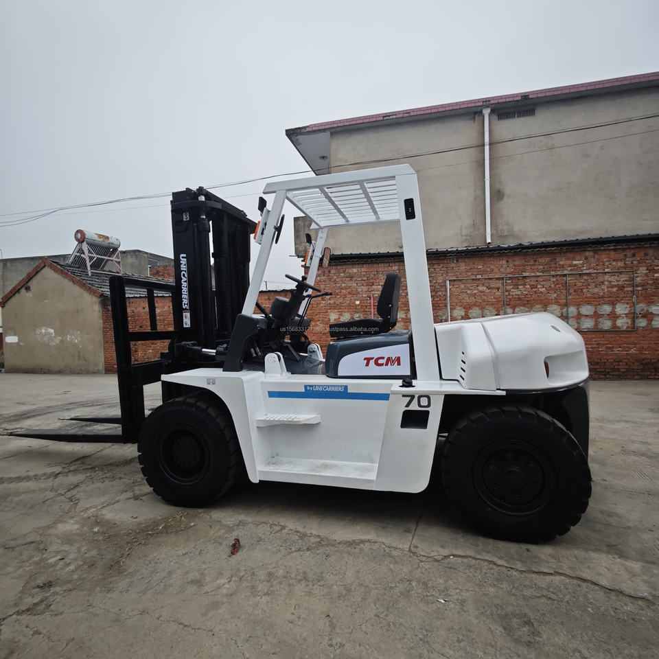 รถยกดีเซล รุ่น TCM 70 ปี 2023 ขนาด 7 ตัน ยกสูง 3 เมตร ขับเคลื่อนล้อหน้า สำหรับงานออฟโรด เสากระโดงสองตอน ยางตัน