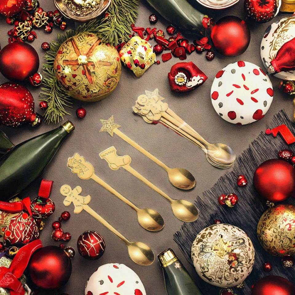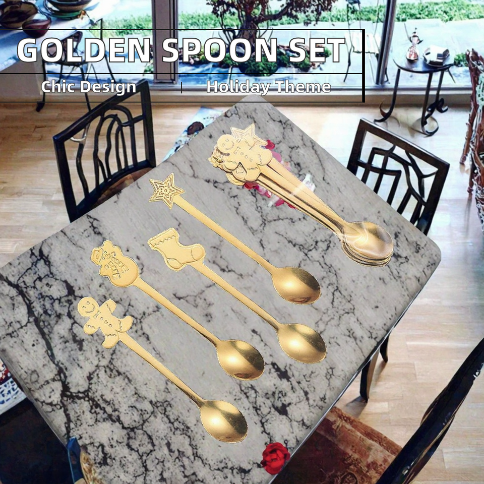 2023 Modern Design Stainless Steel Christmas Coffee Cake Spoon Set Golden Metal Spoon for Party Christmas Gift Idea