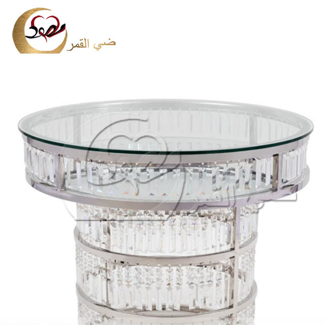 2023 Modern Round Glass & Stainless Steel Gold Wedding Cake Table with Crystals for Hotel Furniture Outdoor Dining & Banquet Use