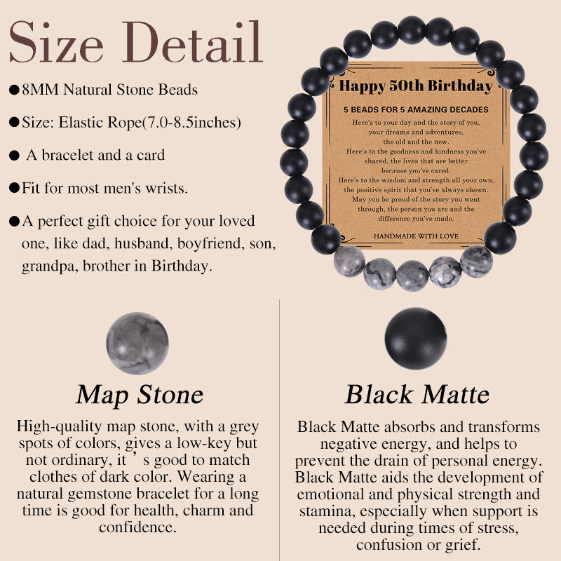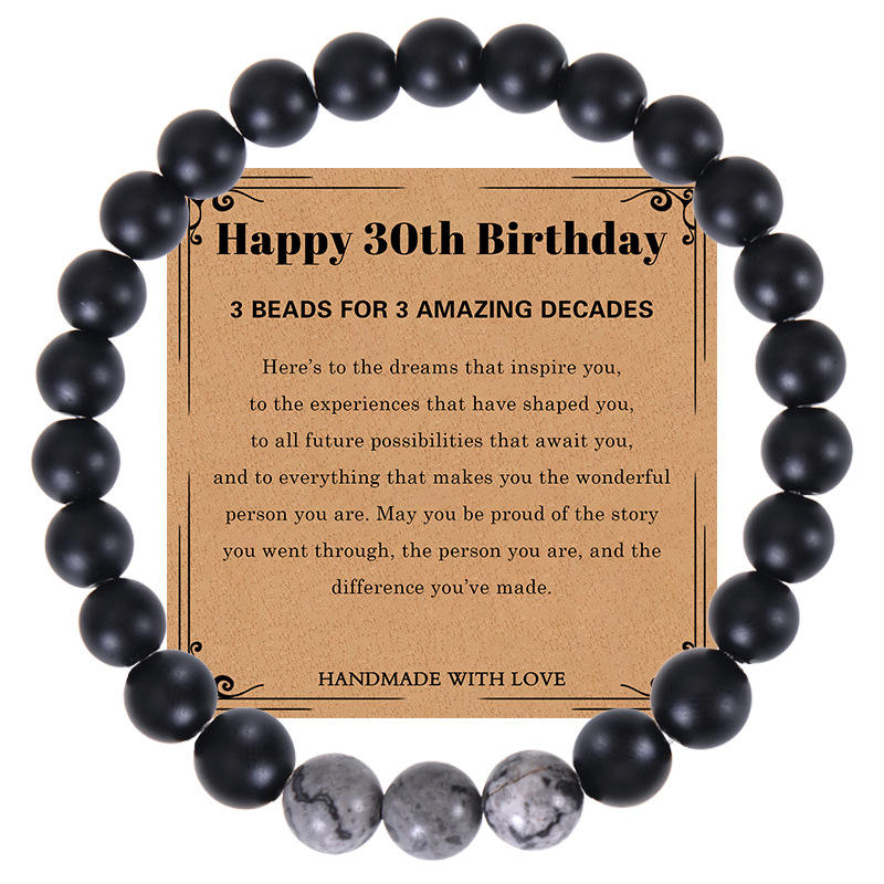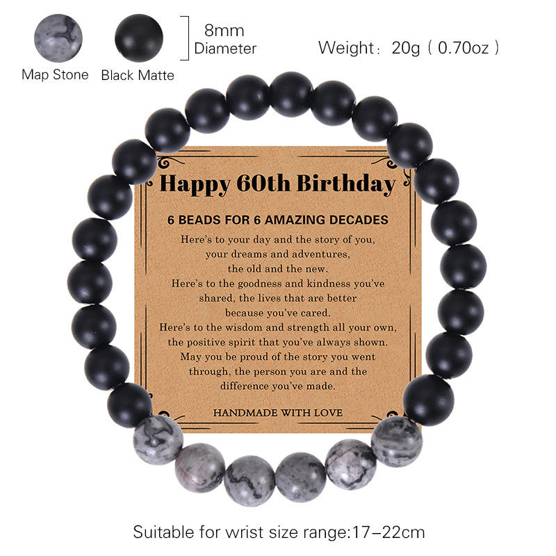 2023ใหม่สร้อยข้อมือบัตรอวยพร30/40/50/60/70ปีสร้อยข้อมือแผนที่ธรรมชาติลูกปัดหินสีดำของขวัญวันเกิดของผู้ชาย