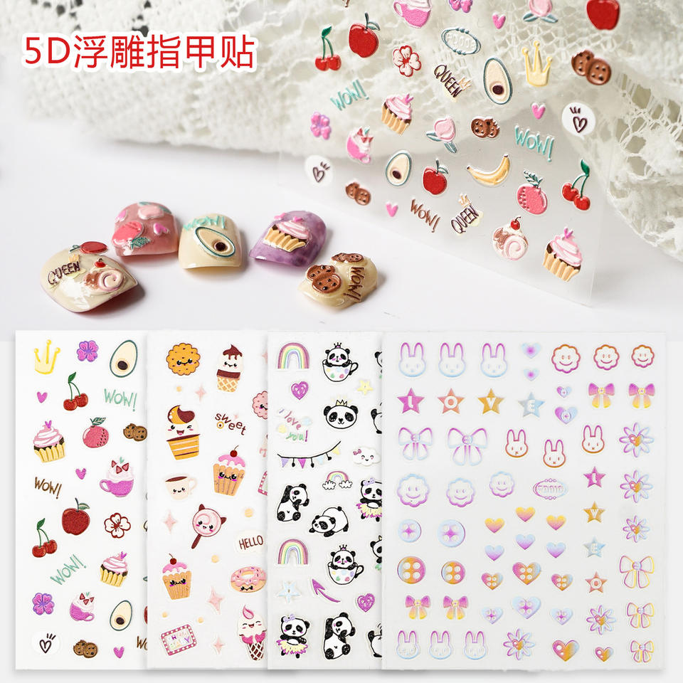 สติกเกอร์ตกแต่งเล็บรูปการ์ตูนเกาหลีรูปเมฆสีขาวหน้ายิ้มรูปดอกไม้สีรุ้ง2023 5D ใหม่