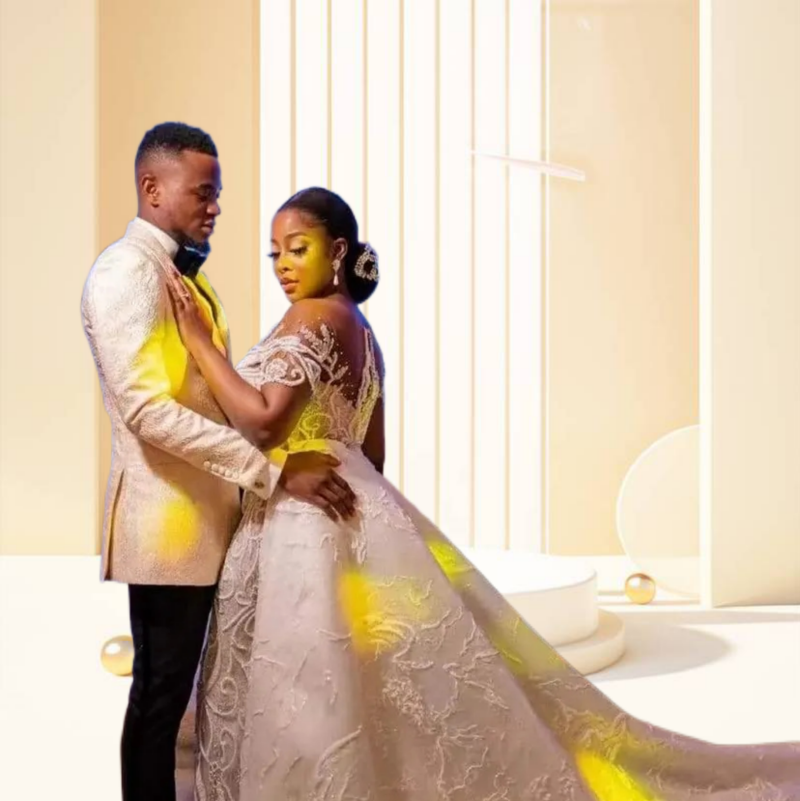 ชุดแต่งงานทรงเอไลน์ไซส์พลัสลายดอกไม้ปักลายฉลุแบบสลิม แขนยาว สีเนื้อ แต่งลูกไม้ คอวี ผูกโบว์ คอลเลคชั่นใหม่ปี 2023 สไตล์แอฟริกัน