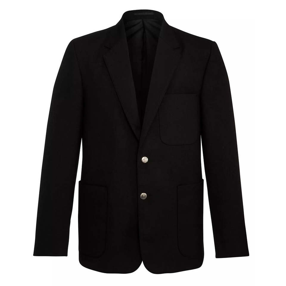 เสื้อเบลเซอร์นักเรียนสไตล์อังกฤษแบบสั่งตัดทรงเข้ารูปสีดำสำหรับวัยรุ่น ดีไซน์เสื้อเบลเซอร์นักเรียน
