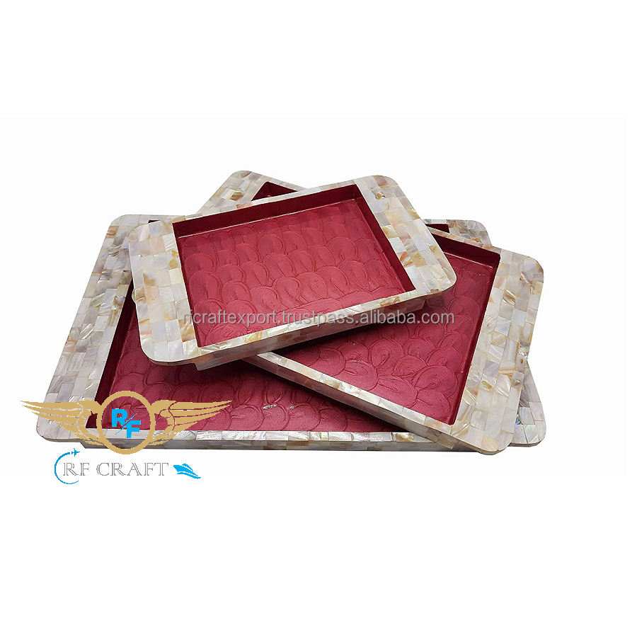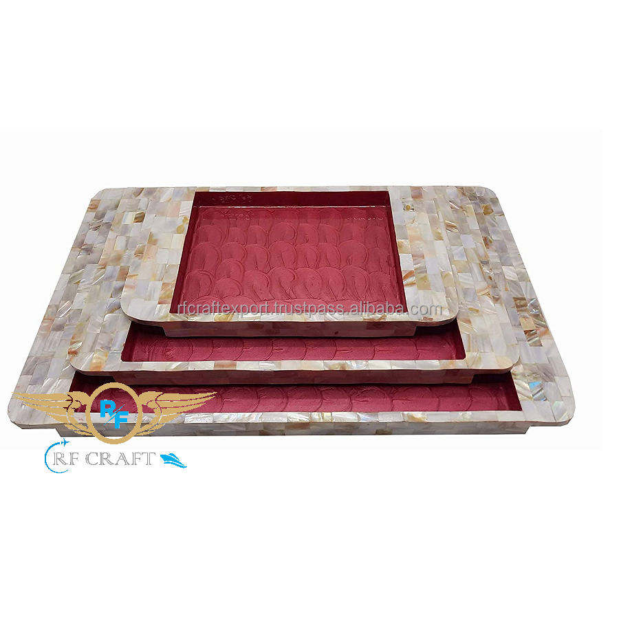 ถาดเสิร์ฟพร้อมที่จับโลหะสีทองสำหรับตกแต่งโรงแรมถาดเสิร์ฟพร้อมมุก2023สินค้าใหม่คุณภาพสูง