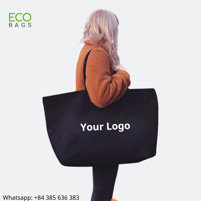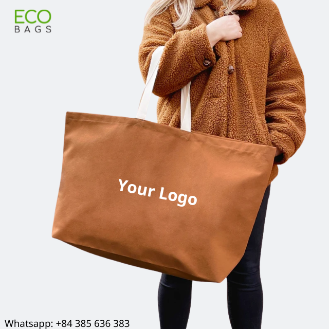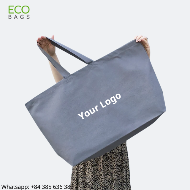2023ใหม่ผ้าใบผ้าฝ้ายเป็นมิตรกับสิ่งแวดล้อมขนาดใหญ่กระเป๋าโท้ทใช้ซ้ำได้พร้อมโลโก้ลายตัวอักษรออกแบบได้เองจากเวียดนามของขวัญช้อปปิ้ง