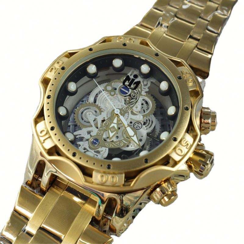 2023ใหม่ INV นาฬิกาผู้ชายควอตซ์สายเหล็กหน้าปัดขนาดใหญ่ตัวเรือนใสลายโครงกระดูก
