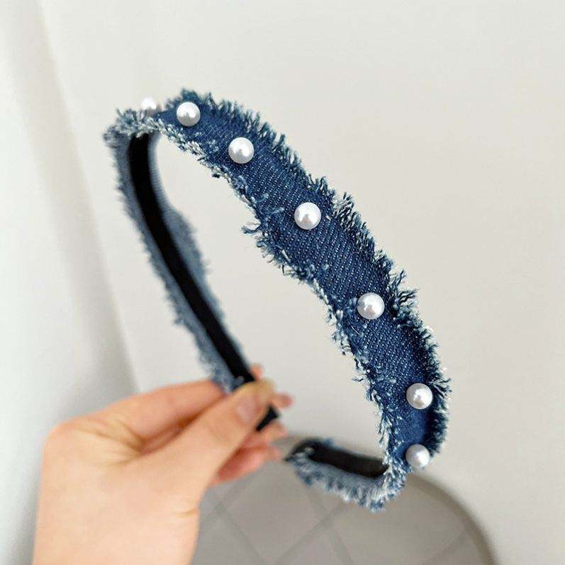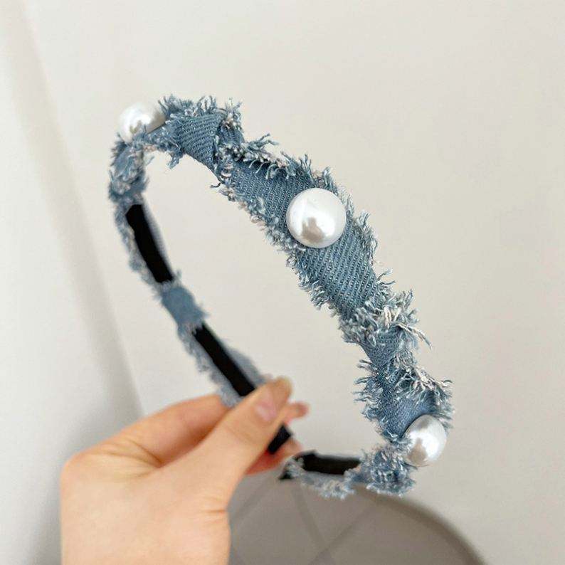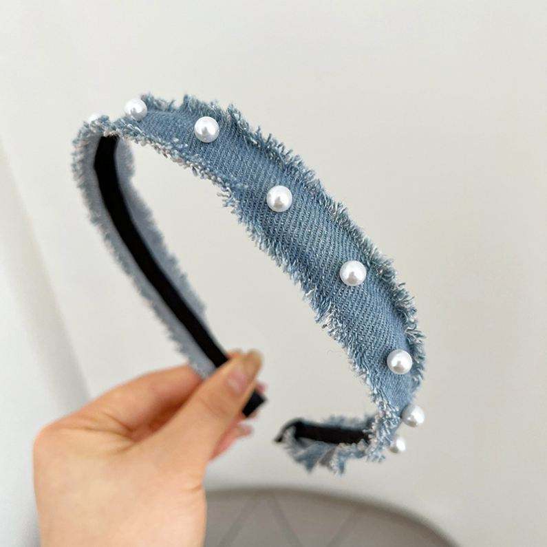ที่คาดผมเดนิมไข่มุกสไตล์เกาหลีใหม่ปี 2023 สำหรับผู้หญิง ดีไซน์เรียบง่าย ดูหรูหรา แบบผูกปม ใช้ได้ทุกวัน สำหรับมัดผมแต่งหน้า