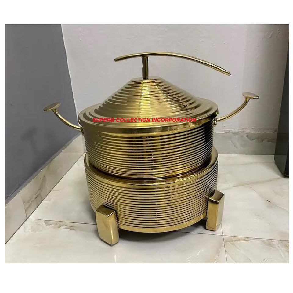 จานอุ่นอาหารสแตนเลสทรงกลมสีทอง6L 2023ใหม่อุปกรณ์อุ่นอาหารสำหรับบ้านร้านอาหารโรงแรมบุฟเฟ่ต์