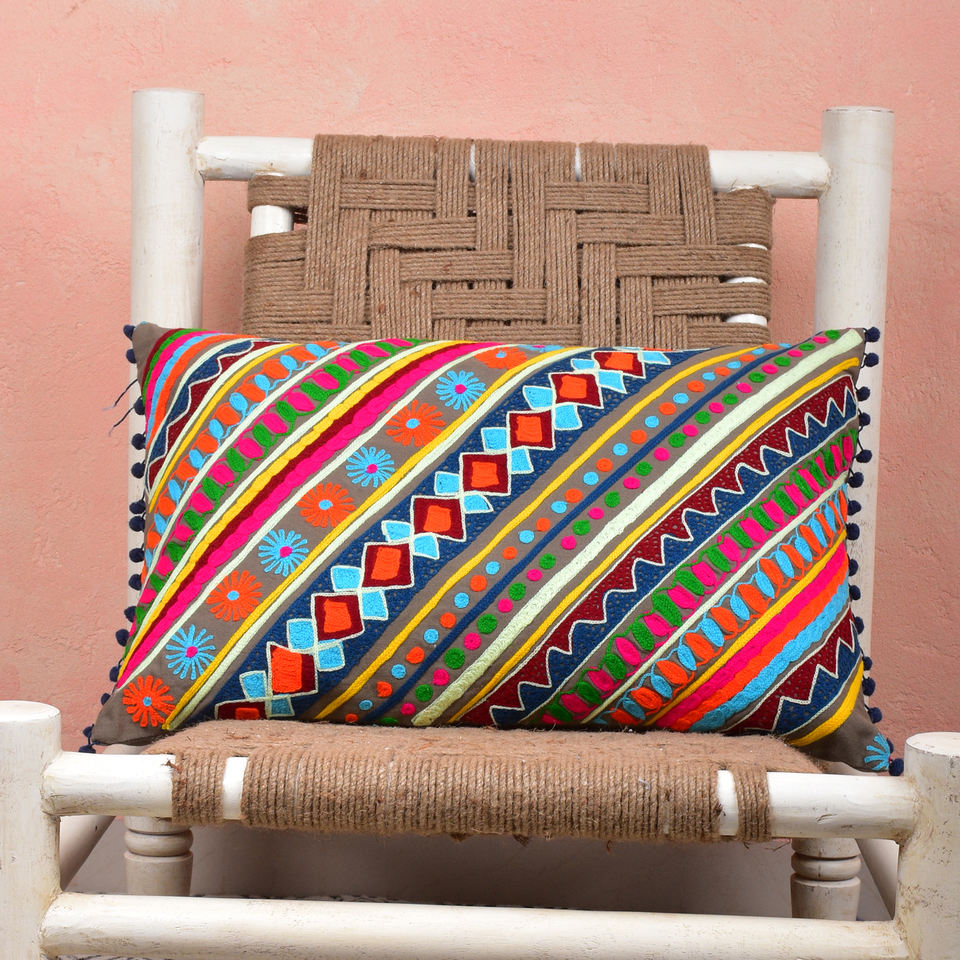 ปลอกหมอนลายปัก16X24พร้อม Pompom,ปลอกหมอนโบฮีเมียนคอลเลกชันฤดูร้อนใหม่ปี2023
