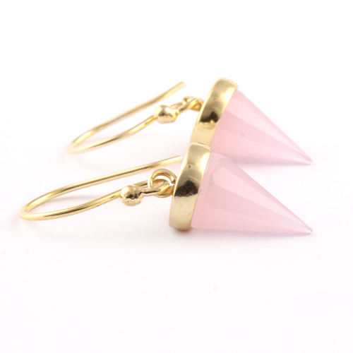 2023 New arrival pink chalcedony spike shape earring 24k gold plated bohemian stylish statement drop dangle earring pairs