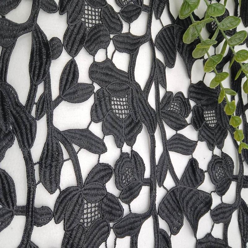 2023 New French Black Water Soluble Milk Silk Embroidery Lace Design White Bridal Wedding Lace Fabric